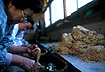 Restorers of ancient documents and calligraphic scrolls are the only people still absolutely dependent on handmade paper. Sotaro Yamaguchi in Yaizu City needs three different kinds of paper to restore the suppleness to scrolls which have grown brittle with age. "We are very worried about the shortage of apprentice papermakers," says Yamaguchi."Papermaking is like an oral tradition, passed on from generation to generation like the baton in a relay race. If it's once dropped, the whole rhythm is lost, a rhythm which has been handed on from person to person for over a thousand years. "