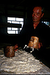 Married couples form the core of the team in a workshop. Outsiders are rarely employed. Although it's mostly the women who stand at the vat the whole day, while their husbands boil the bark and dry the paper, it's the latter whose names appear on the certificates, and who do the talking in negotiations. But the lady masters are content to leave these formalities to the menfolk while they get on with more important matters, such as refining techniques.